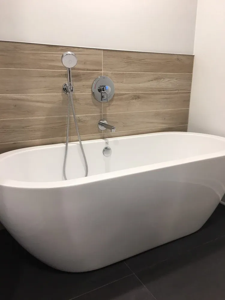 Large-format porcelain or marble-look wall tile