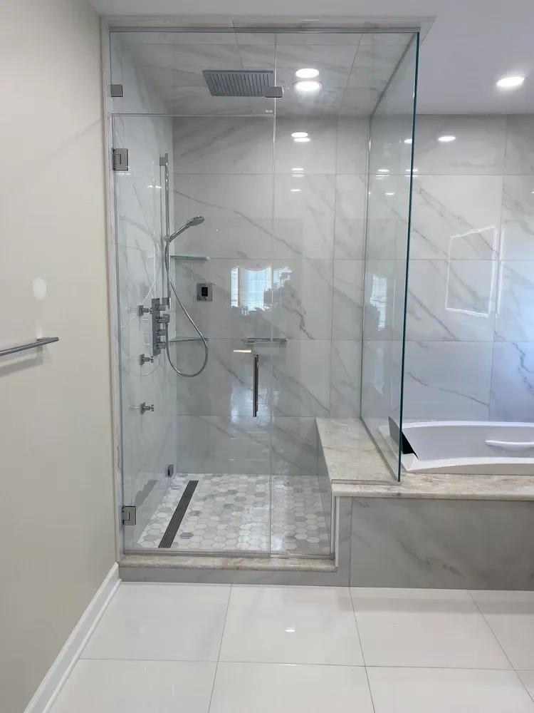 Frameless glass walk-in shower enclosure