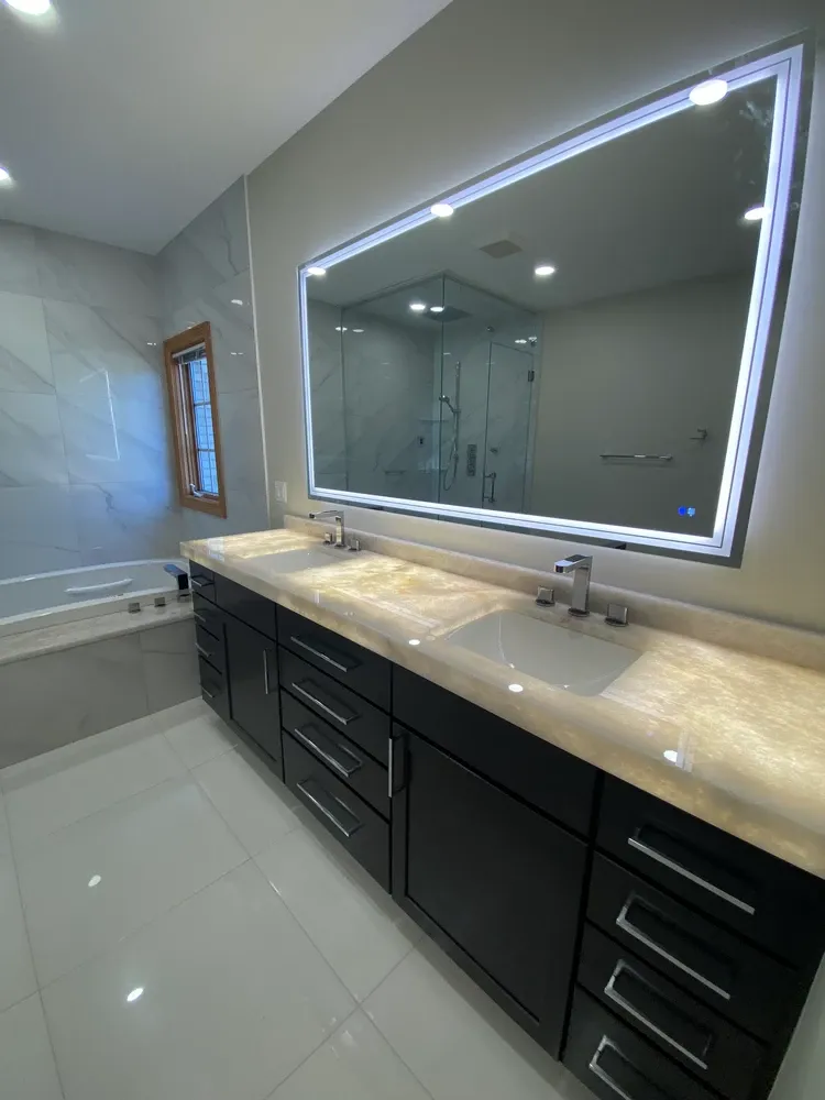 Custom double vanity with quartz countertops